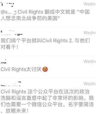 华左群上对咱CR的严重重视*_^ (2) 其中一个人还表示,“鼓励大家去Civil Rights公众号留言,留下我们自己的想法”。其群主留下了批判咱的留言,在群中得意洋洋号召大家去点赞,表示点赞越高,留言的排名越高。难道她不知道,这留言,小编可以通过也可以不通过,甚至可以随时删除么?小编压根就不放心上,才让它通过嘛。