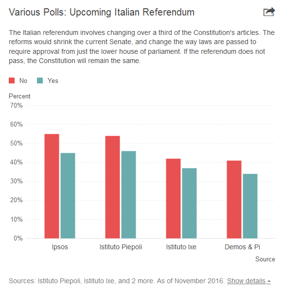 ROME – Italian voters dealt Premier Matteo Renzi a stinging defeat on his reforms referendum, triggering his resignation announcement and galvanizing the populist, opposition 5-Star Movement's determination to gain national power soon. "I lost, and the post that gets eliminated is mine," Renzi said early Monday about an hour after the polls closed. "The government's experience is over, and in the afternoon I'll go to the Quirinal Hill to hand in my resignation" to President Sergio Mattarella. Besides the "anti-establishment" 5-Stars, the outcome energized another "anti" party, the anti-immigrant Northern League, an ally of French far-right leader Marine Le Pen, a candidate in France's presidential race. In voting No, Italians also delivered a rebuke to Italy's industrialists, banks and other establishment institutions, which had staunchly backed the referendum. The anti-reform victory, which could spook investors, comes just as the government had made some inroads in cutting the staggering rate of youth employment and while Italy's banks have urgent need for recapitalization. During the campaign, the risk of political instability in Italy, Europe's fourth-largest economy, triggered market reaction, with bank stocks sinking and borrowing costs on sovereign debt rising. But some analysts predicted the political crisis sparked by Renzi's exit would be short-lived, as politicians focus on lining up support for a new electoral law they view as boosting their parties' chances for whenever elections are called. Wolfango Piccoli, a London-based analyst and co-president at Teneo Intelligence, said the main risk of Renzi's "devastating defeat" will lie in the medium term. That could see "a prolonged muddle-through period, the emergence of an ineffective patched-up coalition government in the post-election phase and continuously poor economic performance," Piccoli said in an emailed comment. The 5-Star Movement, led by anti-euro comic Beppe Grillo, spearheaded the No camp on the constitutional reforms, a package aimed at updating Italy's post-war Constitution that Renzi had depicted as vital to modernizing Italy and reviving its economy. Characteristically confident -- detractors say arrogant -- Renzi, 41, and Italy's youngest premier, had bet his political future -- or at least his current premiership -- on a Yes vote win, and campaigned hard for a victory in recent weeks to confound opinion polls indicating that it would likely go down to defeat. With votes counted from nearly all the polling stations in Sunday's referendum, the No's were leading Yes votes by a 6-to-4 margin, Interior Ministry data indicated. The turnout of 67 percent was especially high for a referendum, and more in line for a vote for Parliament. Renzi had been hoping to beat off the rising populist forces that have gained traction across Europe, as well as with the U.S. presidential victory last month by billionaire political outsider Donald Trump. Earlier on Sunday, in Austria's presidential runoff, left-leaning candidate Alexander Van der Bellen prevailed over a right-wing populist.