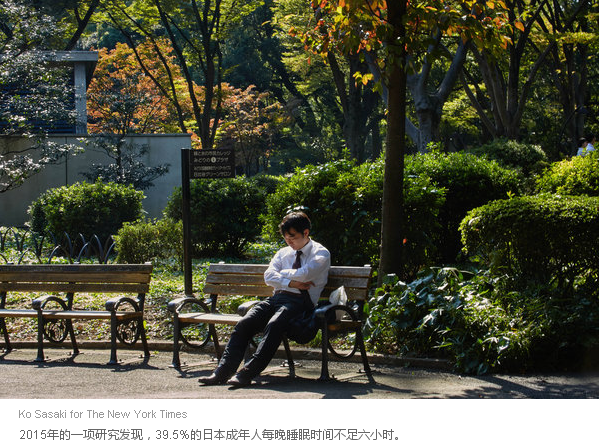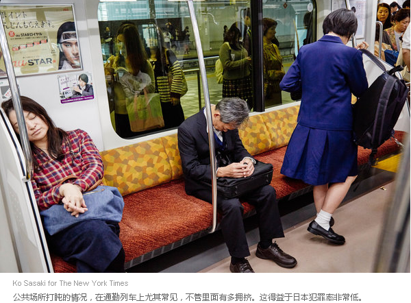 斯蒂格还提到,两种性别的人都喜欢居眠,但女性更有可能因之受到指责,尤其是在一个小睡会被视为不得体的职位上。 居眠在日本已经存在至少1000年,并且不限于工作场合。人们会在百货公司、咖啡馆、餐馆,乃至热闹的人行道上温暖舒适的地方小睡片刻。 公共场所打盹的情况,在通勤列车上尤其常见,不管里面有多拥挤;那些地方往往会变成实际意义上的卧室。这得益于日本犯罪率非常低。 “你在车上睡觉时,不太可能出现打劫的情况,”哈佛大学社会人类学教授泰奥多尔·C·贝斯特(Theodore C. Bestor)说。 在社交场合睡觉甚至可以提高你的声誉。斯蒂格记得有一次在一家餐馆聚餐,一位女性同事的男同伴趴在桌子上睡着了。其他客人称赞了他“绅士行为”——因为他选择留在那里休息,而不是先行离开。 在公开场合小睡在日本如此普遍的一个原因是,人们在家里睡觉时间很少。2015年的一项政府调研显示,39.5%的日本成年人每晚睡眠时间不足六个小时。 居眠不成文的规则是“占地不大”,不会“打破空间规范”,贝斯特教授说。“如果你在会议室的办公桌下躺着,在车上挤占了好几个位置,或在公园长椅上躺着,”他说,那便会因为造成社会干扰而引来指责。 斯蒂格指出,闭眼可能并不总是意味着在睡觉:一个人闭上眼睛可能只是为了在没什么隐私的社会构建一个私人领域。 斯蒂格表示,这也是她预计居眠在日本会逐渐减少的部分原因。如今,智能手机可以让人们睁着眼进入自己的私人空间。