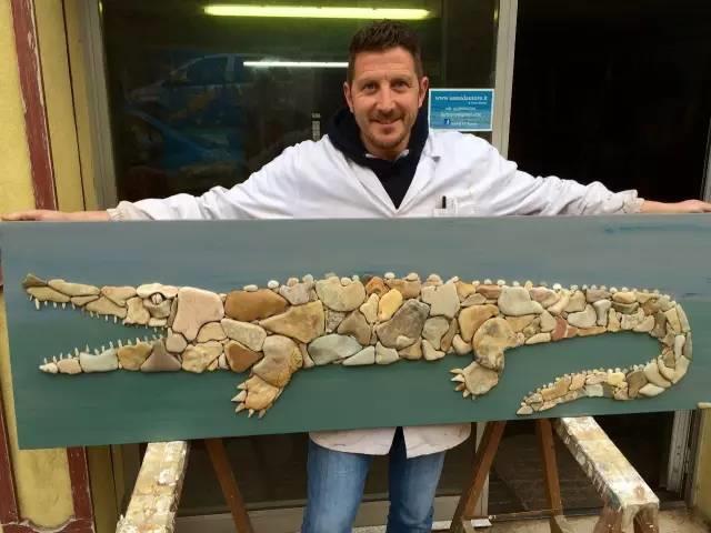 当一个图案成型之后,Stefano会把这些石头移到事先画好的木板上。最后,经过简单的润色,原本平淡无奇的石头瞬间变得妙趣横生。