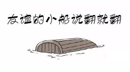 Additionally, as a figure of speech, the metaphor that uses a sailing vessel to describe friendship supposedly started with the US sitcom Friends. But the new incarnation was the caption for a cartoon posted on cartoon artist Nandongni's micro blog. Two penguins are sitting in a small boat and one decides to lose weight, causing the vessel to overturn. "The boat of friendship may capsize at any time" subverts the age-old belief in the notion of lasting friendship and high-lights the fickleness of our quickly changing times.