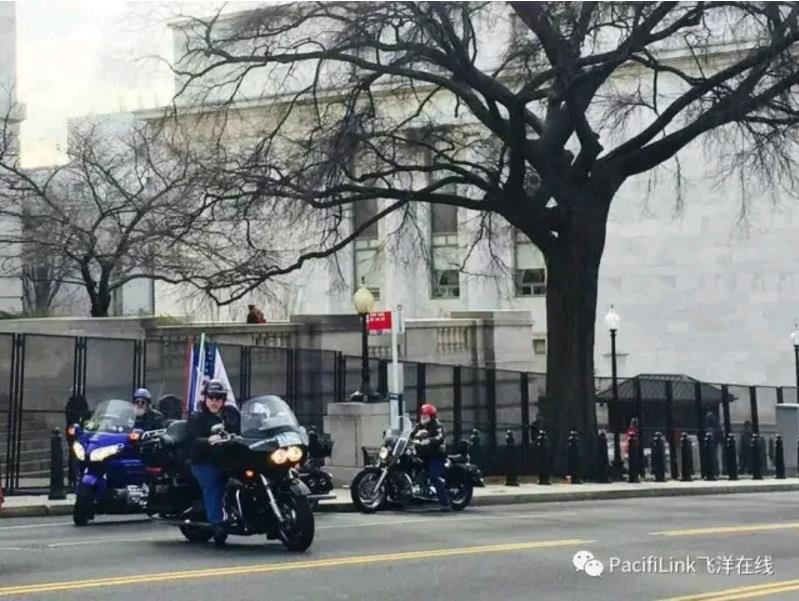 但是总体来说DC的游行还是平和有序的,起码我们观察的那段时间里没有暴力冲突。抗议者的标语也是各种各样,主要有宣扬妇女权益(Women's Rights),支持穆斯林难民(Refugee's Welcome), 反对投票查ID,骂川普,等等。有的比较奇特,看到的最有意思的一个是“我无事可干,所以我就来了”。另外不少人戴着蓝色帽子,上写“Make America Gay Again” (让美国再次成为同性恋?)这显然是针对川普的口号来的:Make America Great Again,(让美国再次伟大)。 另外支持川普的摩托车大游行也是今天举行,这些摩托车手很多是退伍兵,大选期间力挺川普: