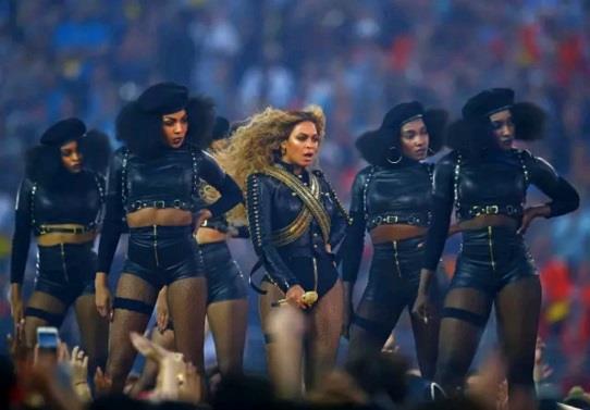 一般艺人在自己得演唱会上爱怎么表达自己的政治观点是他们的自由,比如Kayne West在演唱会上挺过川;去年经典摇滚演出“沙漠之旅”,Roger Waters把平克弗洛伊德的整首经典曲目《Pigs》都献给了川普,还念了一大段个人感想。 当然在“超级碗”这种全国性的活动上,艺人一般都会和主办方签订协议不直接表达任何政治观点——任何政治人物都有人挺有人踩,为了照顾大家的情绪,不谈政治最保险。 当然,这不能禁止艺人自己夹带一些非常“微妙”的信息,大多人看不出来,但若了解整个事件的来龙去脉以及艺人本身的政治立场,“自己人”一眼就能看出。 比如在去年超级碗的演出上,碧昂丝被猜测默默支持了一把反对黑人在司法和执法中系统性的不公平待遇的#BlackLifeMatter运动。表演时碧昂丝身后的舞者全身都穿黑色,戴黑色贝雷帽、梳起黑人爆炸头,让人联想到黑豹党(Black Panther Party),一个60年代发源于奥克兰(Oakland)由人民自发组织上街监督警察的暴力执法却也毁誉参半的组织[1]。