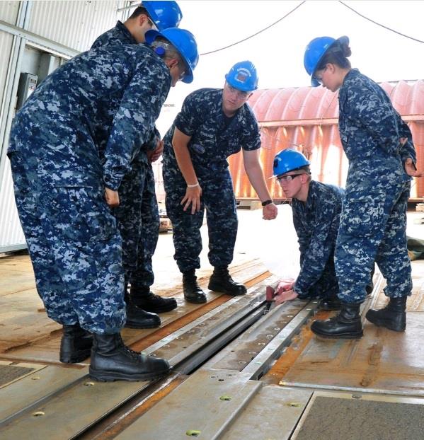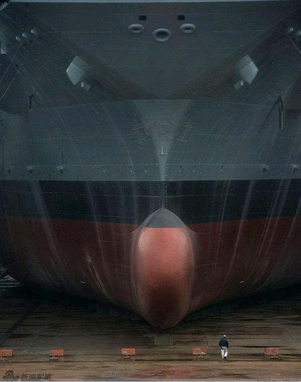 福特级首舰完工后技术人员在水槽中观看眼前的庞然大物。
