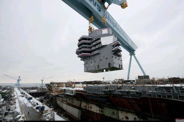建造地点:美国东海岸弗吉尼亚州纽波特纽斯造船厂,纽波特纽斯船厂隶属于诺斯罗普-格鲁曼公司,是美国最大的非政府拥有的造船厂,美国所有的核动力航母都是由该厂建造的。