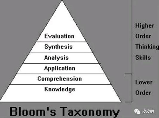 BenjaminBloom(1913-1999)是一位影响卓著的美国教育心理学家,他在1956年提出了至今仍被美国教育界奉若经典的“Bloom分类法(BloomTaxonomy)”,即认知过程分为以下六个由低到高的层次:记忆、理解、应用、分析、综合、评判,其中记忆指的是认识或记住学科领域的事实、术语、基本概念、规则等具体或抽象的知识,但未必完全理解它们的含义。Bloom还在1968年提出了“掌握学习 (mastery learning)”的教学法,即学生必须对前面知识达到一定程度的掌握水平后,才前进到下一步学习。如果测试表明学生尚未达到应该掌握的程度,老师要给他们支持和帮助,直到测试通过后再进入下一阶段的学习。一些教育家认为可以将应用提前到记忆和理解之前,即创造一个真实世界在前、理论学习在后的学习场景,这就是目前仍流行的“问题学习法(problem-basedlearning)”的理论基础。