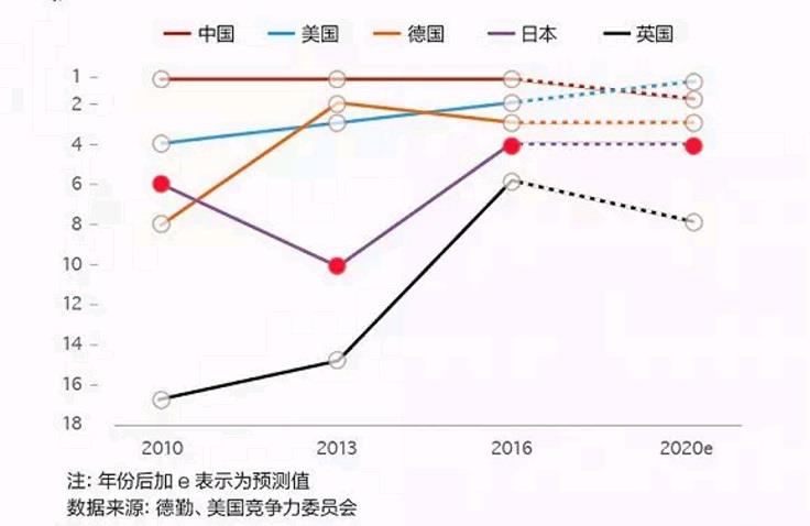 世界知名咨询公司德勤发布的《全球制造业竞争力指数》中,2016年中国排名第一,日本排名一波三折,从第六跌到第十,又上升至第四。