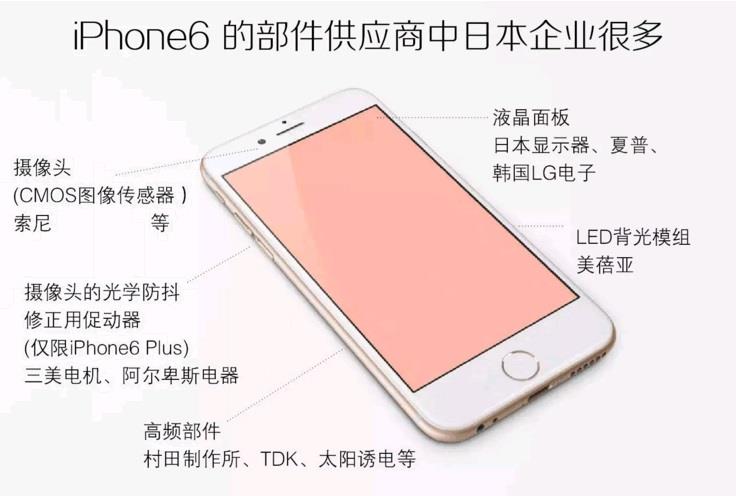 2010-2020年,制造业竞争力指数国家排名变化(来源:界面新闻) 日本排名的下滑与回升,反映了日本制造转型的阵痛,以及重新调整策略的成效—— 日本企业正逐步退出消费品领域,转战产业链上游的高端材料、高价值部件。 以iPhone6为例,日经技术在线工程师拆解结果显示,配备的1300个电子部件,700个是日本制造的。