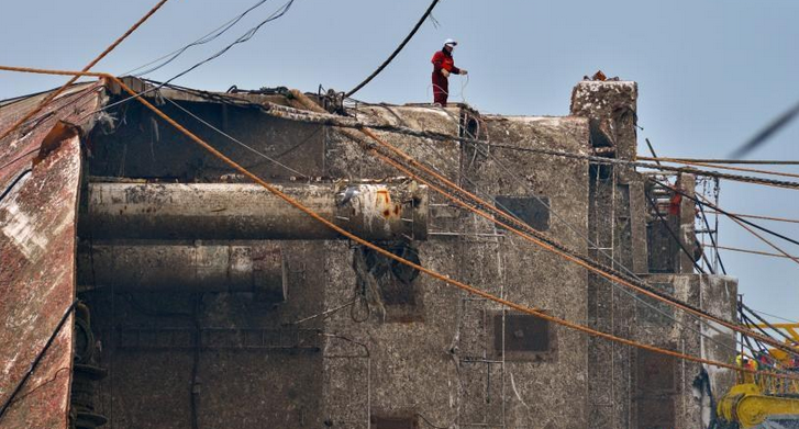 据韩联社报道,韩国海洋水产部3月24日称,截至当地时间当天上午11时10分,“世越号”沉船已被打捞至靠岸所需高度,即露出水面的船体高度达到13米,捞起工作告一段落。