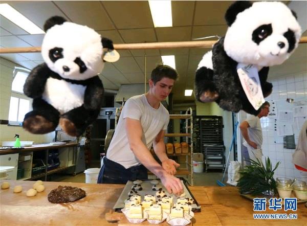 4月5日,在荷兰中部小城雷嫩的一家糕点屋,工作人员在制作熊猫图案的糕点。