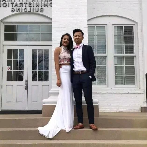 这是我和我的两个儿子。你们一定猜不出哪个哥哥哪个是弟弟吧,左边这个长的着急满脸络腮胡的傻大个是小的芳龄16岁,去年说高183但差不多有两百斤。不知道还会不会再高了不过真的希望不要再胖下去了。右边这个老大18,其实真人挺瘦的还没有150斤高182。 我们住在乔治亚州,天气热夏天长,两个都晒的黑黑的,所以有的人觉得他们长得像墨西哥人还有说印尼的(小编注:其实住在洛杉矶的华人对此感受还要深,尤其是在加州一年四季的大太阳底下生活,想不变黑都难)。我觉得饮食和生活环境让他们的身材和气质和国内的孩子变的不一样,但不管他们变的怎样唯一希望他们能开开心心,健康平安。 来一张老大和他女朋友的合照。