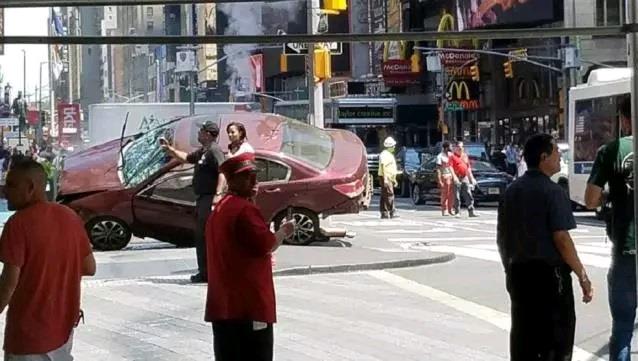 正午之前,在纽约市最繁忙的区域,一辆红色本田轿车逆向行驶入时报广场,高速冲撞入42街至45街的人行道。
