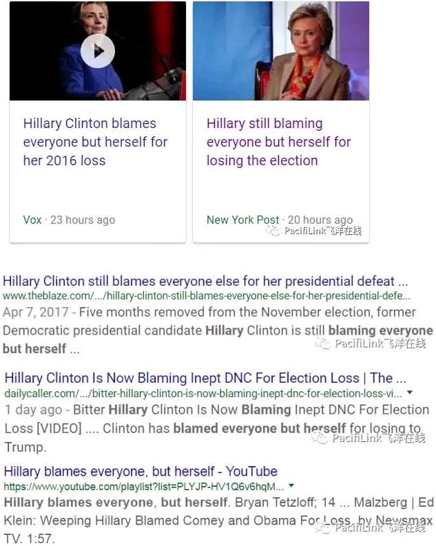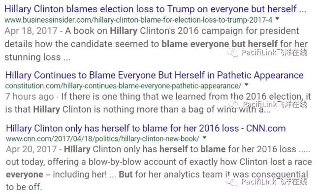 CNN的这篇报道极其罕见地有点调侃希拉里的味道了。 再看几个媒体,左右都包括,有的还是在希拉里最近一次发言之前的文章,主题都是同一个:希拉里把败选责任推给所有人,除了她自己。