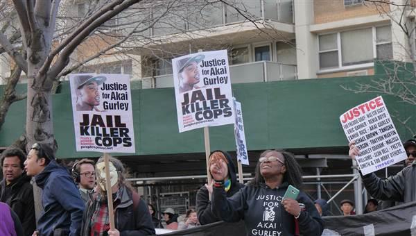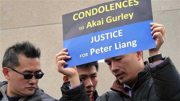 While demonstrators expressed sympathy for Gurley's family, they also criticized the jury's verdict, saying the shooting was unintentional and that Liang, 28, wasn't acting recklessly when his gun went off while patrolling a pitch-dark stairwell at the Louis H. Pink Houses in Brooklyn.