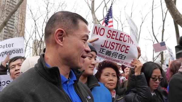 "A lot of white officers have also killed people," Zhang Yuan, who brought along his 18-year-old daughter Jing to the Brooklyn rally, told NBC News in Mandarin. "Why don't they prosecute them? Why only Peter? It's not fair."