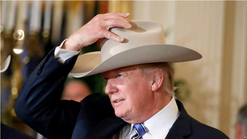 美国总统川普在“美国制造”活动中试戴斯特森牛仔帽 (2017年7月17日) 白宫 — 美国总统川普星期一视察了来自50个州的产品,拉开“美国制造周”的帷幕。 参展产品有来自最东端缅因州的快艇,也有来自7500多公里外夏威夷州的朗姆酒。甚至连总统专用直升机海军陆战队一号都加入了展品的行列,代表康涅狄格州的制造业。 川普总统跳上一辆威斯康星州生产的消防车说:“哪里起火了,我来破灭它。”副总统彭斯站在一旁,白宫新闻秘书斯派塞不停拍照。 几分钟后,川普签署公告,宣布7月17日为“美国制造日”,并表示,他领导的政府已经取消了规定上的障碍,“最艰难的工作已经完成”。 川普告诉来自50个州的企业代表说:“几十年来,美国一直听任其它国家通过不公平的贸易手段,使数百万工作机会在美国消失。看看你们会得到什么吧,一定会让你们高兴。” 这次“美国制造周”的活动,是为了展现美国制造业的重要性,以及上任半年的川普政府通过新政策,将更多制造业的就业机会从海外重新转移回美国国内。 然而,川普家庭企业的很多产品都是在海外生产的,这无疑给本次活动笼罩上了阴影。 民主党全国委员会称这次推动美国制造业的活动“是虚伪的缩影”,说川普总统与其说教,不如身体力行。 国会参议院民主党领袖舒默参议员说:“你要鼓吹什么,就要从身边做起。川普的衬衣和领带,出产地是哪里?中国。川普的家具,出产地又是哪里?土耳其。” 川普女儿伊万卡的服装品牌也是在海外生产的。这一问题多次在星期一的记者会上被问及。