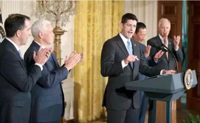 ▲国会众议院多数党领袖保罗·瑞安周三在白宫举行的富士康威州投资新闻发布会上。