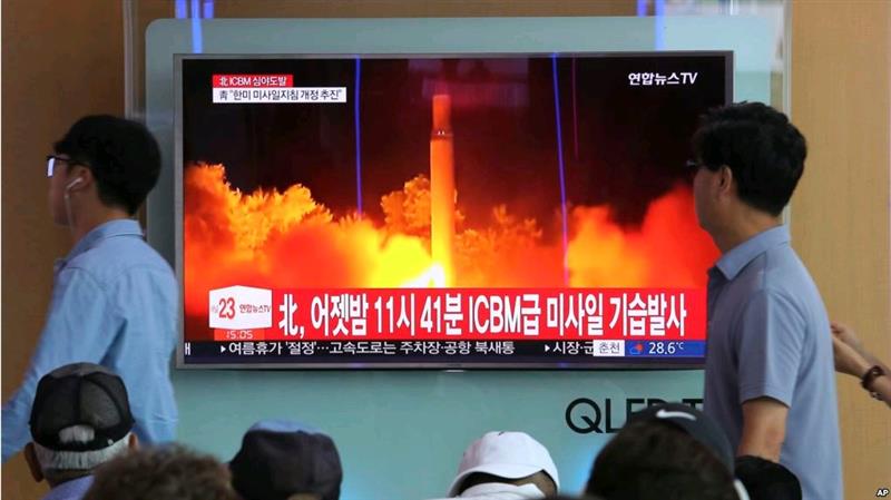 韩国首尔火车站的电视新闻节目正在播放朝鲜新近试射洲际弹道导弹(2017年7月29日) 韩国首尔 — 朝鲜新近试射洲际弹道导弹的举动使美国在东亚的盟国团结起来,并使朝鲜与该地区的敌对国家间本就紧张的关系雪上加霜。 最重要发展是韩国的立场目前看来与华盛顿更为一致。韩国强调增强军事威慑以及经济制裁,同时淡化现在与平壤金正恩政府沟通的可能性。 韩国延世大学朝鲜问题研究所政治分析人士奉英植(Bong Young-shik)说:“这或许是朝着强化美、韩、日三边安全合作这一方向进行更加永久、根本改变的信号。” 然而东京战略研究论坛的安全分析人士格兰特·纽瑟姆说,目前判断开明派的文在寅政府向鹰派的转变是否会持续下去还为时尚早。 纽瑟姆说:“这看来是个可预测的模式:朝鲜挑衅,韩国愤怒,之后随着时间的推移,推动双方通过更为缓和的方式处理问题的力量会再次显现。” 尝试沟通失败 自今年五月就任韩国总统以来,文在寅一直试图实施双轨政策,通过沟通缓和紧张局势并且就核问题与朝鲜重启对话,以此来平衡压力。这位自由派的领导人寻求恢复韩国过去曾实施过的“阳光政策”,试图使经济发达的韩国通过向贫困的朝鲜提供投资和援助来改善两国关系。 然而不断增多的国际制裁使得首尔难以向朝鲜提供诸如重启开城工业园区这样重要的经济激励条件。这个曾雇用了数以千计朝鲜人的工业园区在朝鲜2016年进行了一次核武器测试后被关闭。文在寅政府近期向朝鲜政府提出的展开对话和提供人道主义援助的提议也一直未得到朝鲜方面的回应。 奉英植说:“文在寅政府不得不接受的一个冰冷而坚硬的事实,就是:自实行阳光政策的日子以来,已经今非昔比了。” 部署萨德反导系统 文在寅已经提出全面部署萨德导弹防御系统,推翻了他上周要求推迟萨德部署工作直到广泛的环境评估工作完成的决定。随着当前总共六部移动发射车中有两部已经投入使用,这一防御系统已经在发挥部分作用。 除部署萨德外,韩国国防部长周日表示,韩军还将升级其爱国者导弹系统。 北京反对在东北亚地区部署萨德。中国政府认为这种先进的反导系统可以通过使用高分辨率的雷达监测中国的军事活动。作为报复,中国据报已经对韩国实施了非正式的经济限制。韩国全面部署萨德或将进一步激怒中国。 美国对朝鲜的制裁 目前正在休假的韩国总统文在寅与美国总统川普预计不久后将通电话,就朝鲜声称的第二次成功试射洲际弹道导弹一事进行讨论。一些独立军事专家说,这次试射显示出朝鲜的导弹有能力打击美国大部分地区。 日本首相安倍晋三周一与川普通话。白宫的声明表示,川普和安倍都同意朝鲜对美、日、韩等国家“构成了严重的和不断增加的直接威胁”,双方都致力加强对朝鲜的外交和经济压力, 尽管川普政府强调,为了阻止朝鲜不断增加的核威胁,包括军事行动在内的所有选项都在考虑范围之中,但川普政府一直将重点放在与中国合作全面实施对朝制裁上。中国是朝鲜极为重要的贸易伙伴。 美国驻联合国大使黑利周日就中国拒绝对朝鲜施加严厉的经济制裁以迫使朝鲜通过服从来寻求缓和的做法表达了不满。黑利在一份声明中说,“如果谈不出任何结果”,她将不会再寻求召开联合国安理会的紧急会议。 川普总统还表示他将在不久后签署美国国会上周通过的授权向朝鲜、伊朗和俄罗斯施加新制裁的法案。该法案将美国的金融系统中对与朝鲜进行非法交易的中国实体施加禁令。 上海东华大学朝鲜问题分析人士禹守根(Woo Su-keun)说,北京反对这些次级制裁并认为应该按照中国的法律处理内部违规行为。 他说:“中方持有一个观点:某个具体国家来制裁中国企业是不合适的,只能由联合国来制裁中国企业。” 川普在周六发布的一则推文中说:美国“过去愚蠢的领导人”让中国一年在贸易上挣到几十上百亿美元的同时还让朝鲜发展其核武器项目。 中国商务部副部长钱克明周一表示,中美贸易与朝鲜是不相关的问题。