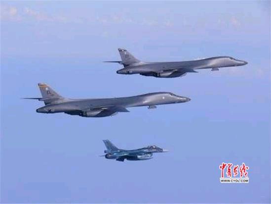 7月30日上午,飞抵朝鲜半岛上空的美国B-1B战略轰炸机。