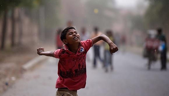 2017年5月3日,印度新德里,当地局部出现沙尘暴和小雨天气,民众得以暂缓暑热。 一项最新研究发现,随着气候变化导致温度和湿度攀升到新的高点,到本世纪末,在印度、巴基斯坦和孟加拉等南亚国家,只要出门可能就是致命的。 由前麻省理工研究人员、现香港科技大学助理教授Eun-Soon Im主导的这项研究表明,除非全球一致努力,减少导致气候变暖的碳排放,否则生活在印度-恒河平原上的15亿人口中,有三分之一将成为受害者。 美联社指出,该研究与以往有关气候变暖的研究不同,因为它不仅考虑到了温度的变化,还把湿度变化以及人体适应的能力考虑了进去。 这三个因素组合在一起,构成了所谓的“湿球温度”,也就是说,用湿的布裹住温度计测量出来的温度。这个温度通常比“干球温度”低,到底低多少取决于湿度。 湿球温度能为预测气候变化的危险程度提供一个测量指标。科学家认为,人类能承受的湿球温度是35摄氏度,在这之上,人体就很难通过散热降温,或者汗压根不会蒸发,从而导致中暑,最终可能在几个小时内死亡,这种情况甚至可能发生在有遮阴、通风的环境下。 迄今为止,全球湿球温度很少超过31度——这被视为非常危险的水准。 科学家在最新研究中预测了两种情况下湿球温度的变化情况。一种是,各国按照《巴黎协议》控制温度升高在2摄氏度以内,另一种情况是维持当下的碳排放速度。 他们发现,上述两种情况对南亚都非常危险。如果不减排,那么该地区约30%的人将在未来几十年不得不承受超过31摄氏度的湿球温度,也就是说,大约5亿人面临致命威胁。另外,到2100年,大约4%的该地区人口,按现在水平算约6000万,将不得不生活在超过35度的湿球温度环境下。 不过,在第一种情况下,受威胁——也就是说湿球温度达到或超过31摄氏度——的南亚人口比例将降到约2%。 美联社报道称,加利福尼亚大学气候学家Omid Mazdiyasni在上个月刊发的一篇研究中提到,温度升高本身就已导致印度近年来频繁受到热浪袭击。 他说湿球温度带来的影响远比温度本身要大得多。 除了温度和湿度变化,南亚本身固有的一些问题也让该地区的民众更容易面临因热致死的威胁。比如在印度,多达25%的人还用不上电。 高温致命的情况在南亚地区已经很普遍。2015年,一股袭击印度和巴基斯坦的热浪致使3500人丧生。印度官方数据显示,该国15个最热的年份里,有13个出现在2002年以后。