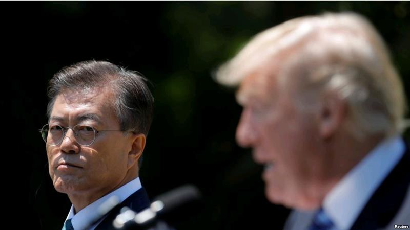 韩国总统文在寅在访问美国时与美国总统川普在白宫玫瑰园发表一项联合声明。(2017年6月30日) 首尔 — 在朝鲜迅速提升核威胁、越来越多的人谈论冲突之际,韩国总统文在寅以平静地克制予以应对。早些时候,美国总统川普威胁要以压倒性的军事回击应对朝鲜的威胁。 朝鲜的人民军星期四发布了进一步的更为详尽的导弹攻击美国在太平洋的属地关岛的计划。朝鲜官方中央通讯社报道说,朝鲜计划发射四颗中程导弹,飞跃日本,打到离美国关岛三四十公里的地方。关岛位于太平洋中,在朝鲜半岛东南3000公里。 朝鲜军队将在8月中旬向朝鲜领导人金正恩提交这一计划。该计划与朝鲜先前对美国的威胁不同,因为这一计划非常具体地列出了导弹试验的运作。 关岛上住着大约十六万三千名美国公民,有一个美国军队基地,其中包括一支潜艇部队,一个空军基地,还有一支海岸警卫队。 朝鲜军方还称川普总统本星期发出的警告是“一派胡言乱语”。川普总统先前说,平壤假如攻击美国,将面临“烈火怒焰”式的反击。 朝鲜中央通讯社说,对川普这种人“不能进行平和理性的对话,因为他失去了理智,只有绝对的力量才能对他奏效。” 首尔迟疑不决 随着平壤更接近于研制出携带核弹头的洲际弹道导弹可以打到美国本土,而且其研制速度比人们预料得还快,美国和朝鲜之间发生军事冲突的风险在增加。本星期,美国情报部门的消息来源说,朝鲜已经造出小型化的核弹头等待试验。分析家们先前猜测朝鲜还要花一些年才能做到这一点。 星期四,韩国军方领导人强烈谴责朝鲜最近发出的威胁,称这些威胁是“缺乏思考的言辞”,强调韩国在盟国美国遭到攻击的时候愿意采取反应行动。 韩国军队参谋长联席会议发言人说,“我们已经做好充分准备,可以对朝鲜的任何挑衅做出立即和坚决的反应。” 但是,韩国总统文在寅就这个问题没有发表公开讲话。他也没有参加星期四的国家安全保障会议。总统的一位发言人说,那次会议不是一次紧急会议,而是一次“例行的每周一次的会议”,由国家安全保障会议的主席主持。 在朝鲜7月29日第二次试射洲际弹道导弹10天之后,文在寅总统才跟川普总统通话。在此期间,他在休假。 韩国首尔的《中央日报》星期四发表社论,批评文在寅总统“对不可否认的紧急状况采取一种松懈的态度。” 这位自由派的韩国领导人在今年5月上任,他希望通过加强外交来缓解朝鲜半岛的紧张局势。但是,由于国际制裁,他难以向朝鲜提供经济好处来促使朝鲜改变。他可以向朝鲜提供的好处包括重开由韩国公司经营的开城工业园区。与此同时,平壤也拒绝了他发出的对话呼吁。 韩国延世大学朝鲜研究所的政治分析家奉英植说,“韩国政府没有一个真正有效的独立的单方面选项可以采用。” 文在寅政府支持美国注重加强制裁和军事威慑。但是,文在寅政府在大多数时候避免谈论美国可能对朝鲜采取先发制人的打击,尽管这种行动有可能招致韩国受到致命的反击。 韩国的非政府组织朝鲜防卫网络的安全分析家申寅均说,“显然,韩国政府不支持美国进行先发制人的打击,大多数韩国人也不支持。” 申寅均说,朝鲜军备增加,威胁日益加剧,这种局面使文在寅总统更加依赖美国保障韩国安全,因而也更难采取独立的外交路线。 东京赞同 在另外一方面,日本内阁官房长官(发言人)菅义伟星期四重申日本与美国盟友关系密切,称日本赞同川普总统对朝鲜采取“最大压力”的政策。 菅义伟说,“川普总统说,‘所有的选项都在考虑之内’。日本政府欢迎这一姿态。我们相信日美加强同盟、加强威慑力和反应能力极端重要。” 日本共同社星期四也报道说,日本防卫相小野寺五典表示,日本有法理依据拦截朝鲜射向关岛的导弹。但是,专家们表示,日本军方目前还没有能力打下高空飞行的导弹。