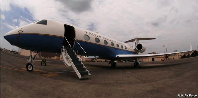 美国空军湾流C-37B飞机。 (美国空军照片)。根据Politico报道,汤姆.普莱斯和他的妻子2017年5月乘坐美国空军湾流C-37B飞机飞往非洲和欧洲,飞行30小时, 估计费用为311,418.25美元。