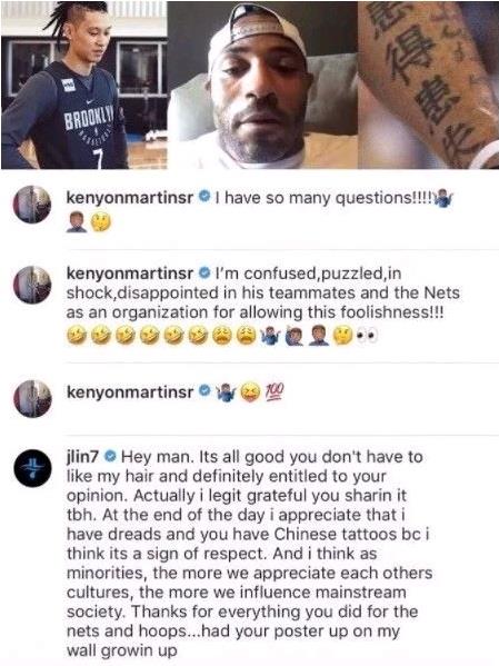 (图片来自网络,下同) 换发型横招指责 今年NBA预赛刚开始,很多人注意到林疯狂 Linsanity 的新发型了。退役两年的NBA球星肯扬·马丁(Kenyon Martin), 绰号 K-Mart(编者注:K-Mart 为美国一联锁杂货店名),在社交媒体 Instagram 上发了一个视频,狠批书豪的新发型。 “难道我需要提醒这臭小子他姓林吗?得了吧,哥儿们。打住了,你们这群人。如果他带上这头牛粪到我们队里来,绝对没门儿。拜托了,得有人告诉他说,‘哥儿们得了,我们已经知道了。你不就是想做黑人吗。’ 我们明白。但你还是姓林。” K-Mart 推特原文如下: “Do I need to remind this damn boy that his last name Lin? Like, come on man. Let’s stop this, man, with these people, man. There is no way possible that he would have made it on one of our teams with that bulls–t goin’ on in his head. Come on man, somebody need to tell him, like: ‘All right bro, we get it. You wanna be black.’ Like, we get it. But the last name is Lin.” 人家林书豪用什么发型招你惹你了?你凭什么这样刻薄?如果是别人,这口水战就开始了。但林书豪毕竟是林书豪,兼有华人的温和谦逊,与基督徒的容忍和仁爱。看看书豪不卑不亢的回答,简直妙极了。