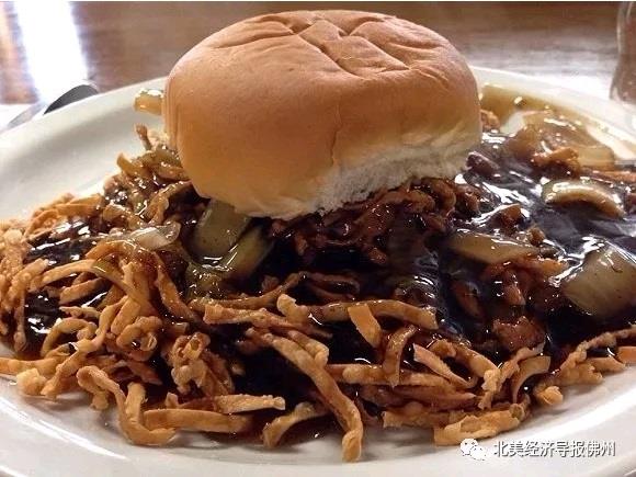 直至今日,很多美国公司食堂也还保留着沙拉餐台 之后社会和经济发生了变革,女性也进入公司成为上班一族。公司工作节奏快,不允许职员外出用午餐,更不可能让女性像之前一样细嚼慢咽地来一顿午餐,所以大多数公司会在员工餐厅设立了沙拉餐台。但公司很聪明,为让员工吃完饭能立即返回工作,甚至直接把午餐带到工位上边干边吃,餐台上沙拉的供应形式是被夹在两片面包片中间做成了三明治,这也让职场中的女性开始和男同事一样,嚼完三明治立刻上阵工作。 炒面三明治-劳动阶级的心头爱 虽然听起来有点诡异,但外国流行歌里唱的炒面三明治却是实实在在的美国美食。它在1920年代发迹于新英格兰地区的福尔河流域,融合了中式炒面和西式餐包东西两种不同饮食文化。