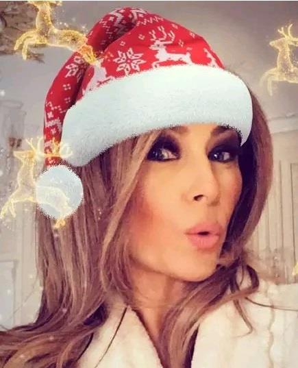 第一夫人梅拉妮也没闲着,在马拉狗分享了一张头戴圣诞老人帽子的照片。还故作娇艳。毕竟是职业时装模特出身,这个眼妆,神情,动作,完全可以上时装杂志。
