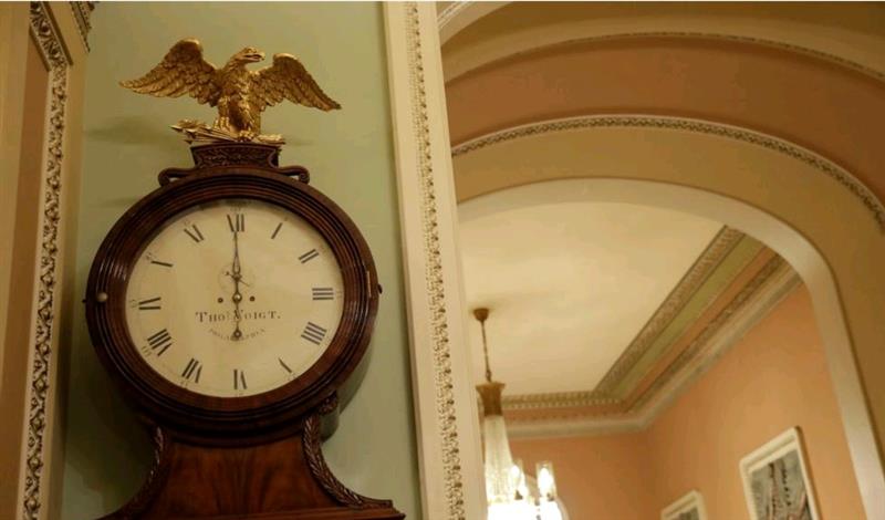 国会山参议院的时钟指向半夜12点时美国政府开始部分关闭