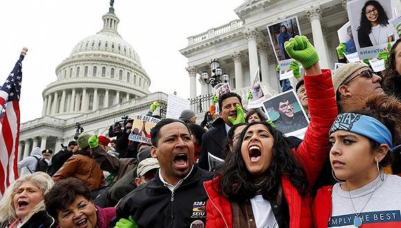 2017年12月6日,美国华盛顿,民众集会抗议特朗普政府废除DACA计划,要求国会重新制定移民计划。 在美国政府关门三天重新开张后,总统特朗普终于松口,表示愿意为年轻移民提供获得公民身份的途径,但条件是国会筹集到250亿美元资金用于修建边境墙及其他安保措施。 白宫官员周四(1月25日)称,特朗普将支持为多达180万“梦想者”寻求合法身份,这一数字是目前受“童年抵美者暂缓遣返”计划(DACA)保护者的两倍多。 但与此同时,作为协议的一部分,特朗普还希望国会提供一项规模250亿美元的信托基金,用于在南部边境建墙、加大入境口岸的安保力量并改善美加边境的状况。 DACA是2012年由时任总统奥巴马签署实施的一项移民项目,旨在保护那些儿童时期就被父母带入美国的无证移民,让他们免遭遣返的命运,这些人也被称为“梦想者”。去年特朗普突然宣布废除DACA,并给国会六个月时间提出新的解决办法。 据彭博社报道,这份被白宫称作“立法框架”的具体文件已递交给国会,里面还包括限制“连锁式移民”,即仅允许美国公民为自己的配偶和孩子申请签证,而不能为父母和其他亲属申请。这一框架还要求废除已有20多年历史的绿卡抽签项目。 特朗普政府敦促参议院多数党领袖麦康奈尔尽快根据该计划起草议案,并在2月6日那周提交参议院讨论。现有联邦政府基金将于2月8日午夜到期。 此前由于民主和共和两党在“梦想者”和建墙等问题上存在分歧,参议院未能就一项临时支出法案达成共识,导致美国联邦政府在当地时间上周六凌晨停摆,直到三天后的周一下午才重新“开门营业”。 根据最新计划,这180万无证移民将可以在10到12年内逐步获得公民身份,其中包括69万已经申请DACA项目的无证移民,以及约70万符合资格但尚未申请的,另外还有一小部分是因时间框架调整而变得符合资格的。 这个项目将依照寻求美国公民身份的相关法律,在教育、就业和道德品格上设置一定的条件。如果有犯罪行为,或者涉及公共安全或国家安全方面的担忧、曾经实施欺诈,以及在财政上依赖政府,那么其合法身份就可能被取消。 共和党保守派参议员科顿(Tom Cotton)称赞了特朗普的移民计划,并表示期待在国会展开工作将其变成立法。“总统的这个框架宽容且人性化,同时也很尽责”,他说。 另一名共和党参议员格雷厄姆(Lindsey Graham)也将特朗普的表态视为一大突破,称“总统在移民问题上的领导作用将使我们解决这个难题。对于特朗普总统明确表示支持为DACA受益者提供公民身份,我很感激。这将极大有助于参议院起草提案,并经总统签署成为法律。”