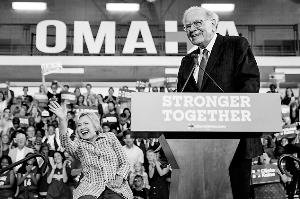巴菲特当天前往内布拉斯加州小城奥马哈,与希拉里共同出席在当地一所高中举行的竞选宣传活动。巴菲特一直倾向于民主党阵营,希拉里宣布参选总统后,巴菲特成为希拉里的坚定支持者。