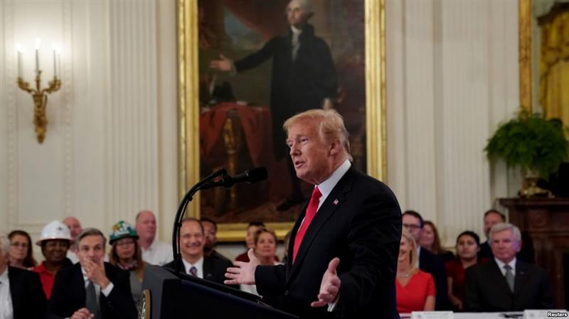 美国总统川普在白宫签署成立美国工人全国委员会的行政令前的仪式上讲话。(2018年7月19日)