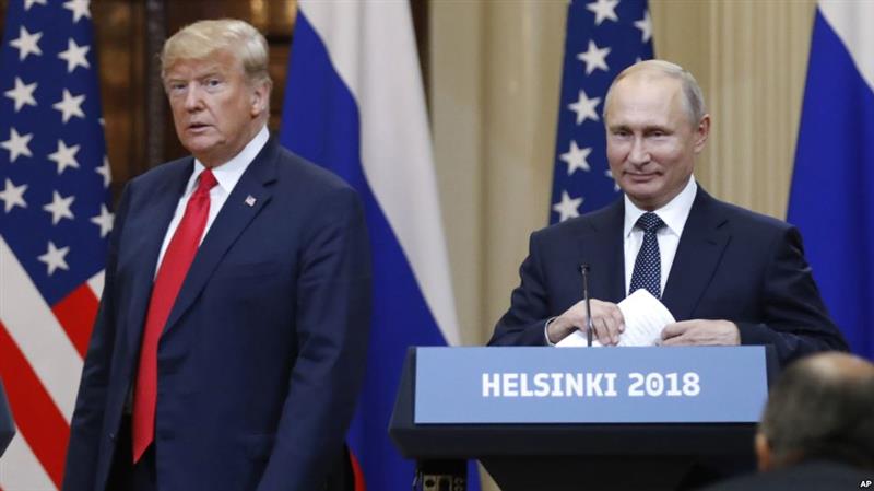 美国总统川普和俄罗斯总统普京在芬兰赫尔辛基会晤后举行联合记者会。(2018年7月16日)