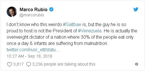 流亡在哥伦比亚的反对派领袖胡里奥·博尔赫斯发推说:“在委内瑞拉人受苦和饿死之际,尼古拉斯·马杜拉和西莉亚·弗洛雷斯却在全世界最贵的餐厅之一大快朵颐,用的全是盗窃委内瑞拉人民的钱。” 然而,出国享受了这次豪华盛宴的马杜罗无悔无恨。他在返回加拉加斯后说:“我在这里向我们的朋友努斯雷特致意。同志,我很快就会回到伊斯坦布尔再度相会。感谢馈赠。” 盛产石油的委内瑞拉一度颇为富裕,但是过去五年来一直处在经济危机之中。动荡使很多委内瑞拉人缺食少药,大批人被迫逃亡其它南美国家。 据联合国说,自从2014年以来,有两百多万委内瑞拉人逃离出国。 《迈阿密先驱报》上个月发表的Meganalisis民调显示,超过30%的委内瑞拉人说,他们一天只吃一餐。将近同样数目的人报告说,他们每星期至少一天“没有或几乎没有”吃东西。多达78%的人说,他们难以找到足够的食物。