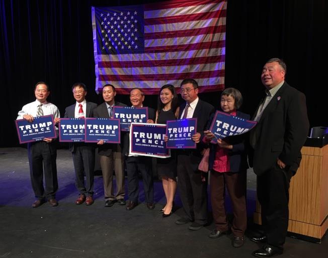 支持川普的代表在辯論會後合影。(記者羅曉媛/攝影)