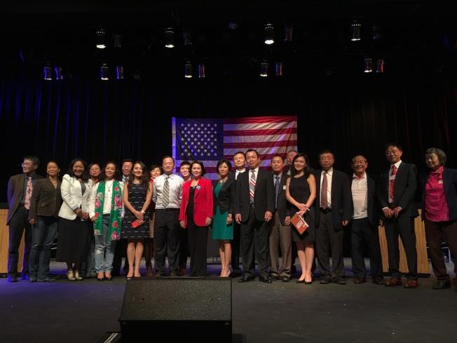 大華府華人社區舉辦首場總統候選人辯論,來自全美各地的「挺川」與「挺柯」代表參與辯論,並在會後合影。(記者羅曉媛/攝影)